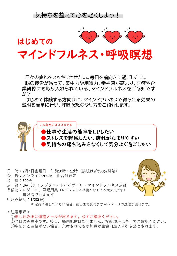2/4 オンライン学習会 気持ちを整える はじめてのマインドフルネス