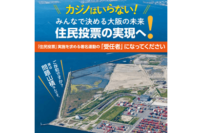 3月24日に府議会が、29日には市議会が「カジノ・IR計画案」を可決し、大阪府民はカジノを呼ぶことに賛成したことになりました。カジノ誘致に「賛成」の人も「反対」の人も、意見を表明することができる「住民投票」を直接請求署名運動により実現させませんか?大阪府でこの直接請求署名運動が行われるのはなんと45年ぶり!