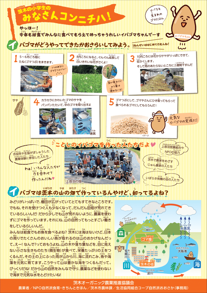 茨木市の全小学校の給食に無農薬のゴマ(イバゴマ)を使ってもらうことができました!