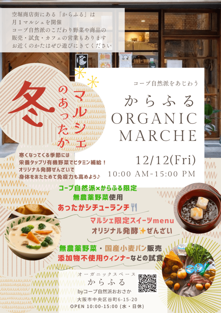 「みんなが通いやすい活動拠点がほしい」という組合員の声からうまれた『からふる』はコープ自然派おおさかの組合員が気軽に立ち寄り、利用できる”みんなのための居場所”です