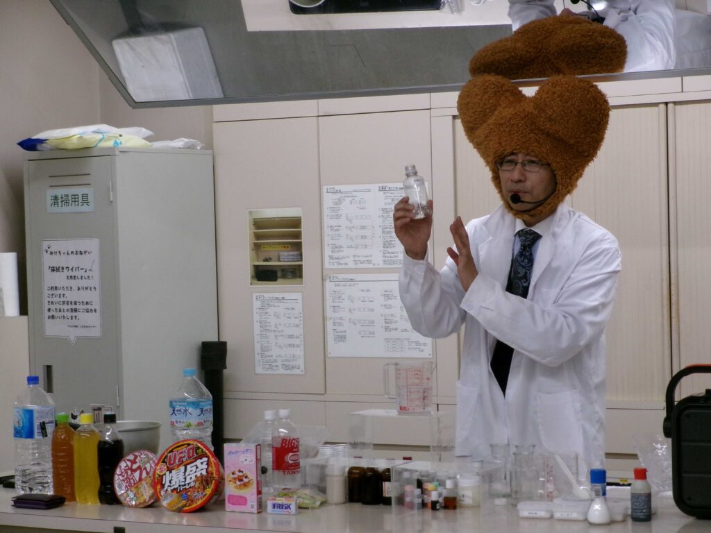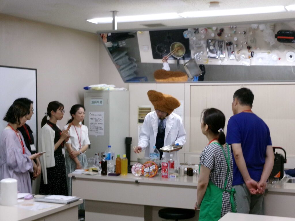 様々な添加物を使って清涼飲料水やチョコもどき、バターもどきなどを作る実験を実演され、添加物のトリックを目の当たりにしました。寸劇や動画も交え、「不自然な食べものはなるだけ避ける」「本物」を選ぶことの大切さを楽しく学ぶことができました。