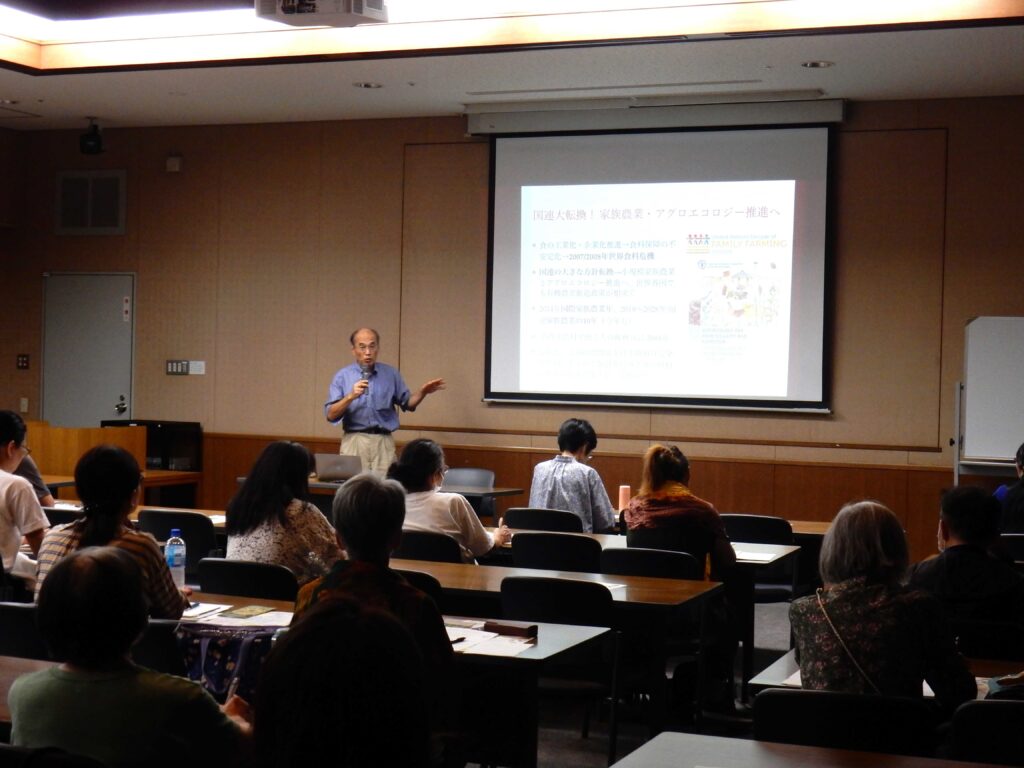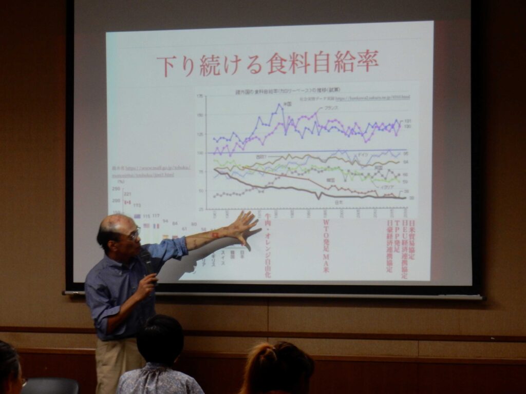 そこにはタネ・農薬・化学肥料を売りたい多国籍企業の思惑が透けて見えますが、気候危機への対抗策は有機農業だと考えられます。私たちは、生産者とともに食料主権を地域で取り戻さなければなりません。健康な食はすべての人の権利です。世界では、「人権なしに有機農業はない」「女性の権利=アグロエコロジー」というスローガンが叫ばれています。