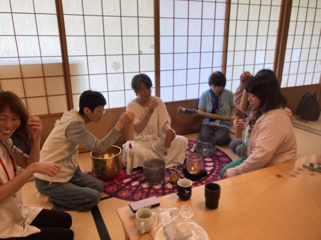 起きてからはけだるい感じが少しありましたが、ゆっくりした気持ちになれて心身共に緩む感覚でした。その後に全員で感想のシェア会をしたら、皆さん色々な表現で見たもの、聴こえたもの、楽器の音色に何故だか涙が出てきた事…それぞれがその人自身の身に起きた感覚を共有してくれた事で、体験がより深まった気がしました。