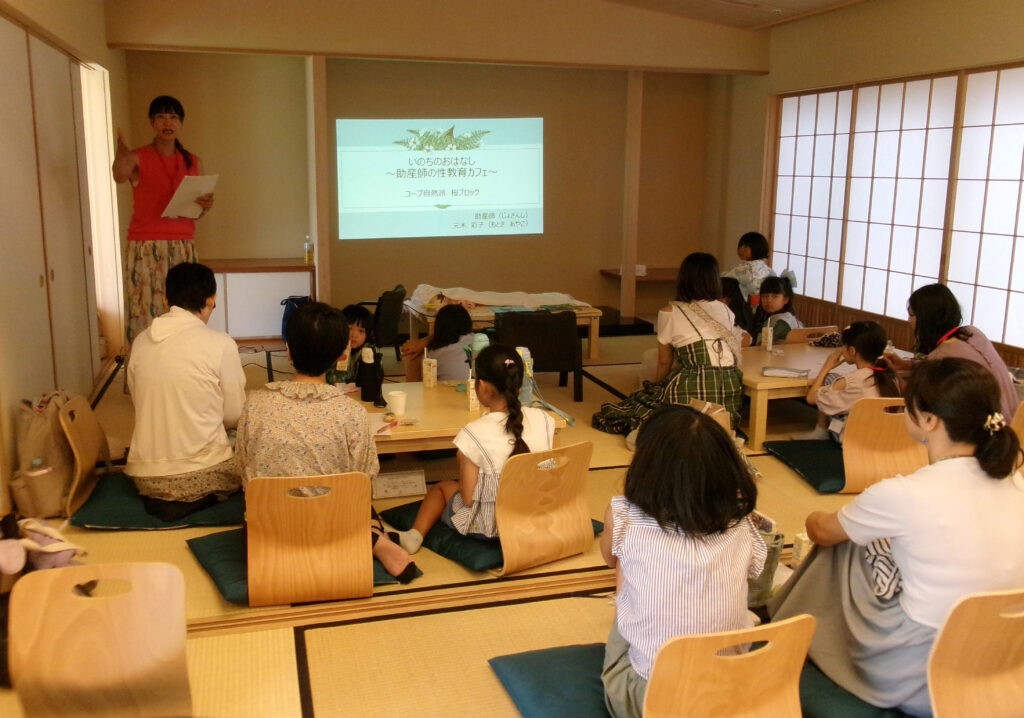 助産師の元木彩子さんが講師の性教育カフェを開催しました。9組の親子22名の方々に参加していただきました! 約2時間の講座でプライベートゾーン〜妊娠・出産のこと、月経や射精について親子が学びました。